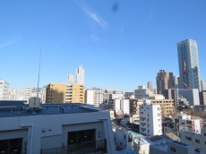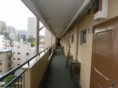 お部屋前の外廊下からは月島の高層マンション群がご覧いただけますよ。