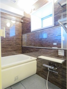 窓がある明るいバスルーム。湿気が多いところだけに自然換気ができるのはうれしいですね。追い焚き、浴室乾燥機能付きと設備も充実しています。