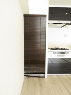 キッチンのお隣のブラインドをあげると洗濯機置場になっていました。