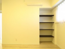 洗面室の向かい側にはこんな大きな棚付きの物入れも設置されていました。