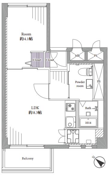 間取りのご紹介です。1LDK、34.00㎡。