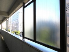 玄関前の廊下には外から見えずづらいようについたてが設置されています。