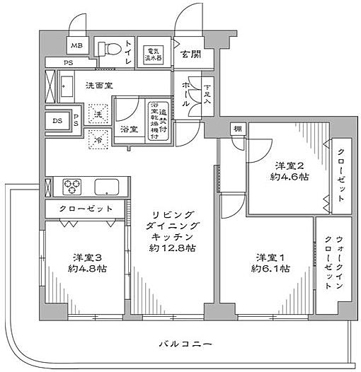 洗濯機置場には棚がありません。上部に棚をつけて、スッキリお使いください☆