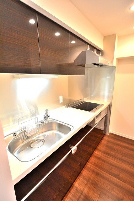 浄水器付の水栓に大きなシンク、作業のしやすい大きなワークトップに3口のIHコンロ。どこをとってもお料理・お掃除がとてもやりやすそうです(^_-)-☆