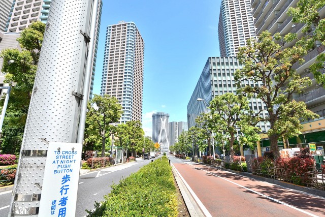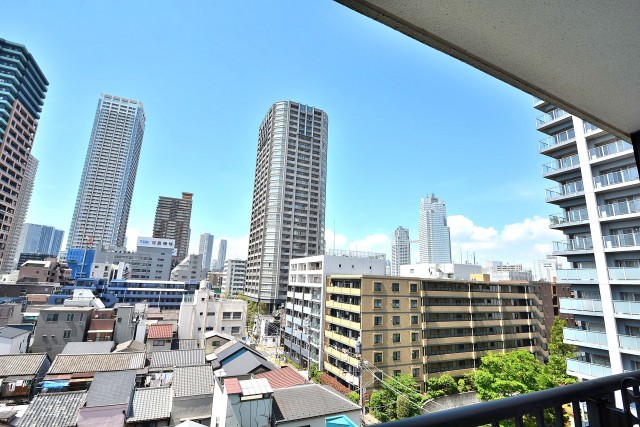 バルコニーは隅田川と反対側を向いているので、バルコニーから隅田川を臨むことはできませんが、月島・佃エリアの新旧が織り交ざった景色を見る事ができます。