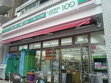真っ直ぐ歩いてくると100円ローソンがみえてきます。手前に信号があり、信号を渡るとこちらの100円ローソンがあり、並びに本日ご紹介のお部屋「中銀築地マンシオン」があります!
