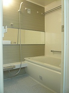 追炊き・浴室乾燥機付き浴室になります。落ち着きあるアクセントパネルはおしゃれさもありリラックスタイム間違いなですね。浴槽の横には手すりもあり、立ち上がったりする際助かります。