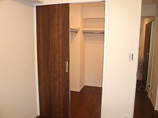 続いて先程のお部屋の並びにある4.5帖の洋室です。丁度L字の廊下を曲がったところにあります。こちらもポールハンガー付きのクローゼットがあります。お部屋は少々コンパクトですが、収納もできるのでうまく活用できそうです。