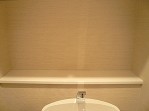 ウォシュレット付トイレです。背面にはカウンター部分があります。おしゃれな芳香剤などを置いたりインテリアも楽しめそうです♪吊戸棚にはトイレットペーパーもしっかり収納できます。