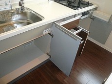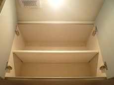 キッチンの奥には洋室があります、洋室に入る前にまたまた収納棚!