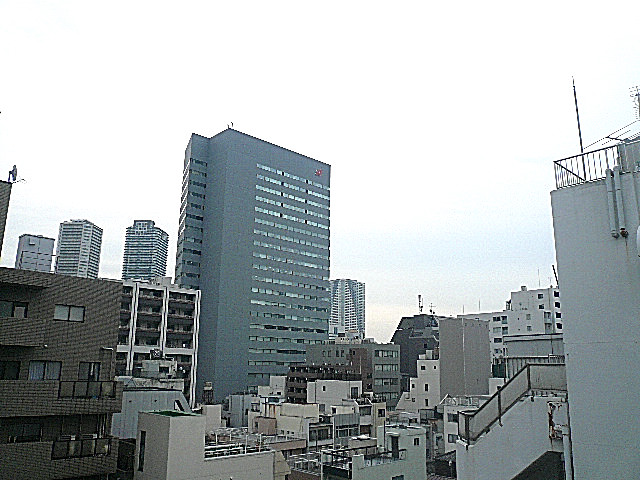 最上階8階からの眺望です。周囲は高い建物もありますが、青空もみえます。