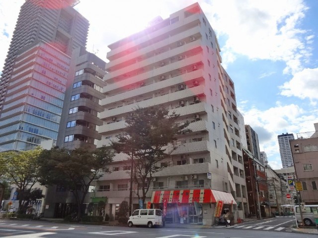 1階には縞模様のテントが目立つ電気屋さんが営業しており、かつ清洲通り沿いなので場所も分かりやすいです。