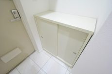玄関を上がると右に下足入れが設置されています。収納量は、ご家族ですと少々足りなそうなので、普段使う靴をこちらに入れて、入らないものは他で管理する必要がありそうです・・・。
