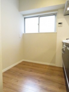洗濯機置場はバスルームのお隣。脱いだ衣類は直接洗濯機へ入れられて楽かも♪