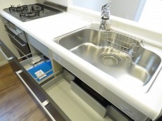 コンロは2口。シンプルな造りのキッチンなので、お手入れなどはしやすそうです☆浄水機能付き水栓、食洗機つきとスペック◎!後片付けがラクだと家族と一緒に過ごす時間が増えそうですね。