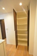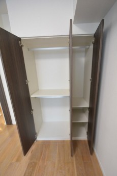 こちらには、ウォークインクローゼットと物入れがあり、たっぷり収納。
