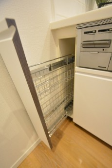 トイレットペーパーのストックや掃除用品を収納出来ます。