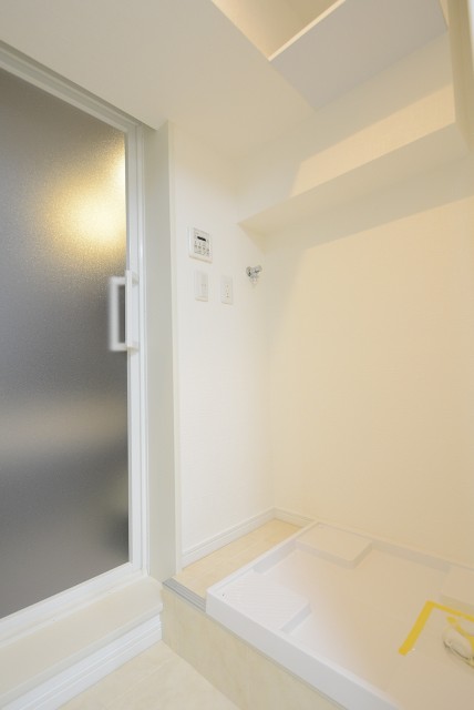 また、キッチン手前には扉付の洗濯機置場があります。キッチンに洗濯機。欧米ですね~笑