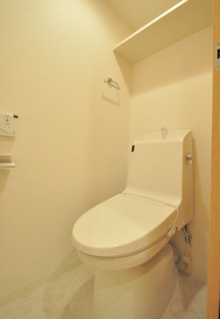 サービスルームの先にトイレがあります。棚があるので、ストックを収納しておくことができますね☆目隠しにカーテンを付けたり、壁に絵や写真を飾ってお気に入りの空間を作りましょ☆