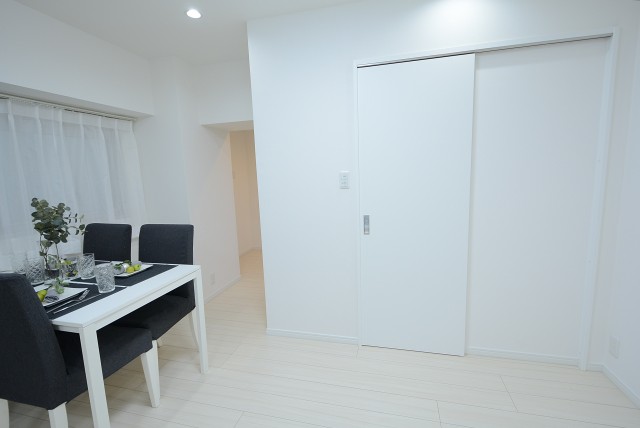 クローゼットがついていて、独立したお部屋としてもお使いいただけますが、引戸を開ければリビングとしてもお使い頂けそうですね♪