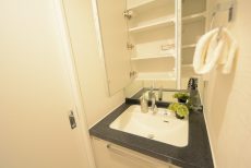 トイレの奥に洗面室があります。洗面台は新品なのでとってもキレイでした☆
