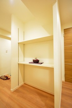 入ってすぐのスペースも棚などを置いたり、工夫できそうです。