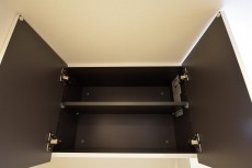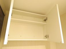 ランドリースペースの上には吊戸棚が設置されていますので、洗剤やシャンプーなどのストックに重宝します。