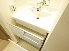 洗面ボウル下の引き出しにはタオルやドライヤーなども入れておけそうです。