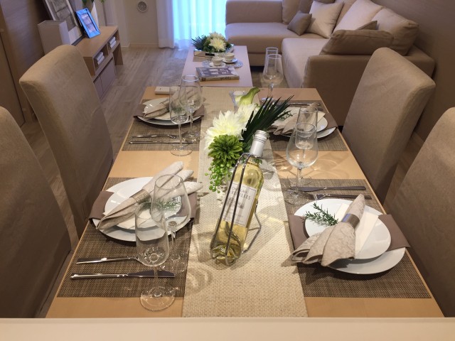 家具や小物は見本なので付いてないのですが、置いてある事によって生活のイメージがしやすくなります。家具の大きさや色などの参考にもなりますよ。