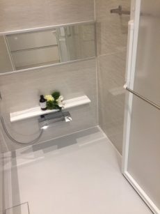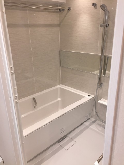 横長の鏡は、浴槽に浸かりながら鏡を使いたい時にとても便利ですよ。
