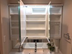 洗面台下の収納とミラーキャビネットがあります。大きい物から細かい物まで収納可能ですね。