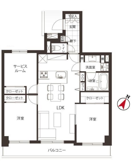 サービスルームとは、建築法上の分類で採光が足りなかったりして居室とみなされないお部屋です。法律上なので実際の状況とは違う事もあり、未だによく分からない事の一つです^^;)