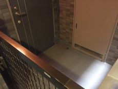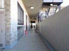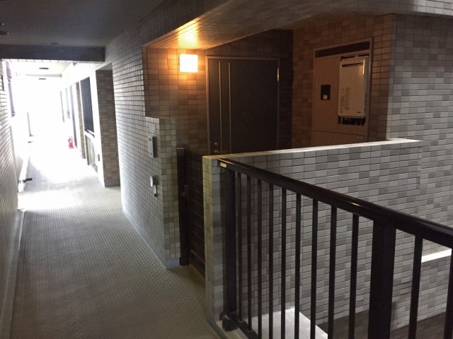 エレベーターや共用廊下壁面も、外観と同じ色合いのタイル貼りになっています。