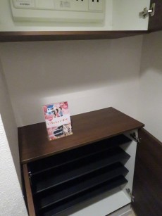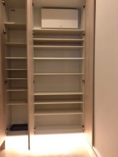 シューズボックスはトールタイプ。収納力はバッチリです。棚板の高さも調整出来ますのでブーツなどでも問題ありません。