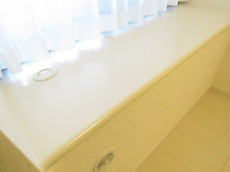 窓際はカウンターになっています。窓の外が共用廊下なので窓はあまり開けることがないかもしれませんが、カウンター部分に植物やお気に入りの物を置いて眺めるのもいいかも。クローゼットも設けられています。