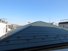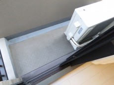 サービスバルコニー。室外機が半分くらい占めているので大人が一人立てる位のスペースが空いています。目の前はお隣の屋根ですが、人目が気になることはなさそうです。