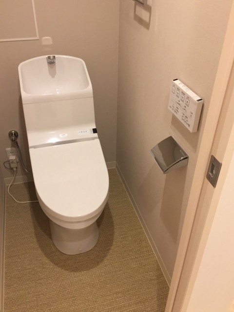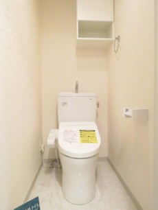 ウォシュレットと小物の収納に便利な吊戸棚がついています。