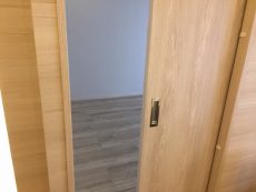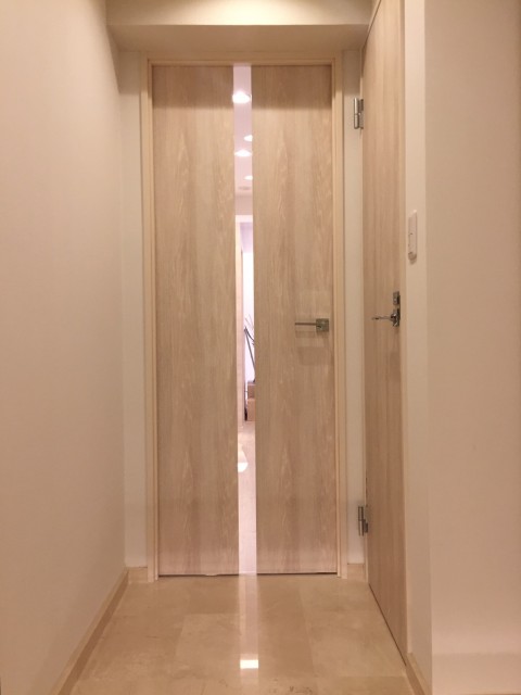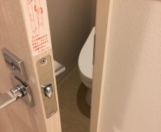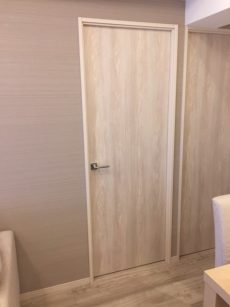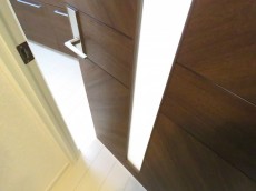 ダークブラウンの建具で落ち着いた雰囲気。さっそく手前の扉から順番にご紹介いたします。