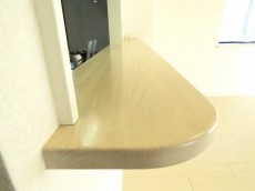 玄関ホール。横にはシューズBOXが設置されています。カウンター部分には植物やインテリアなどを置いて空間づくりを楽しんでみてはいかがでしょう?