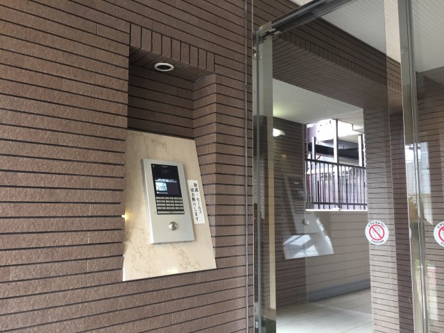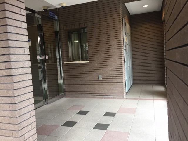 エントランスホールには宅配ボックスや管理人室があります。天井には防犯カメラも見えますね。ちなみに、管理人さんはお掃除中で不在でした…お疲れ様です(^^)