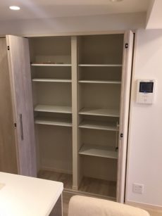 ダイニング・キッチン近くの扉を開けると、収納になっていました。