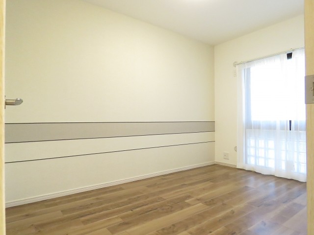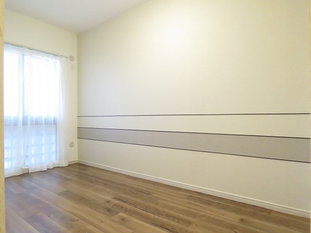 約4.2帖の洋室の向かい側は約5.5帖の洋室。こちらにも同じ柄のアクセントクロスが使われています。