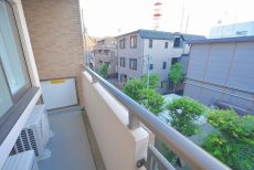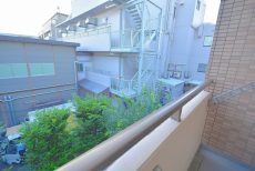 バルコニーの外は住宅が建ち並ぶ風景。周囲に高い建物はないので陽ざしに影響はないかと思います。