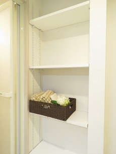 上にも物置棚がありますが、ラックなどを置いて収納スペースを増やしてみてもよさそうです。