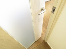 もう1部屋の洋室へ。扉の横は棚付の収納スペースになっています。