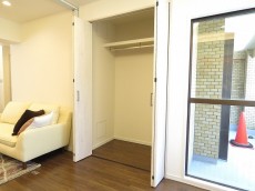 こちらの洋室には大型のクローゼットと窓際に引き戸の収納がつくられています。収納が多いと居住スペースが有効的に使えるのがうれしいですね。