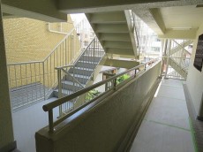共用廊下は外タイプ。中心あたりに共用階段があります。