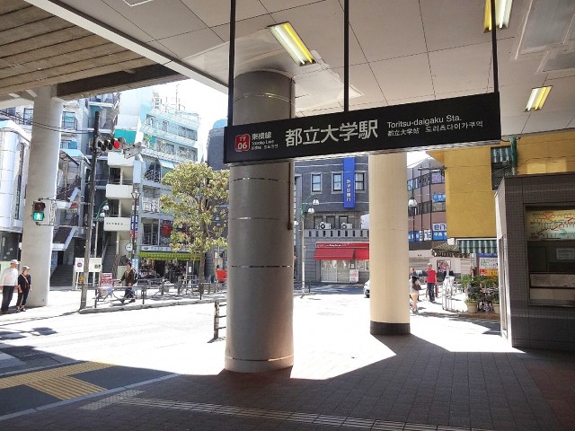 東横線の両隣の学芸大学・自由ヶ丘に比べると落ち着いた感じの都立大学ですが、駅前にスーパー、薬局、おなじみのカフェ、100円ショップ、銀行、交番などが並んだ商店街が形成されており、住み心地のよさそうな雰囲気。