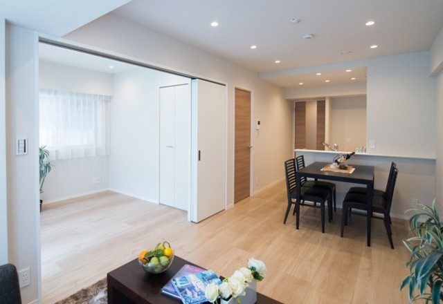 洋室の3枚引き戸を開けリビングを広く使うこともできます!