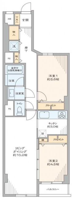 バルコニーが少し狭いのですが、乾燥機があればお洗濯物も安心ですね!カビの発生もグンと減ってお掃除も簡単になるはず。